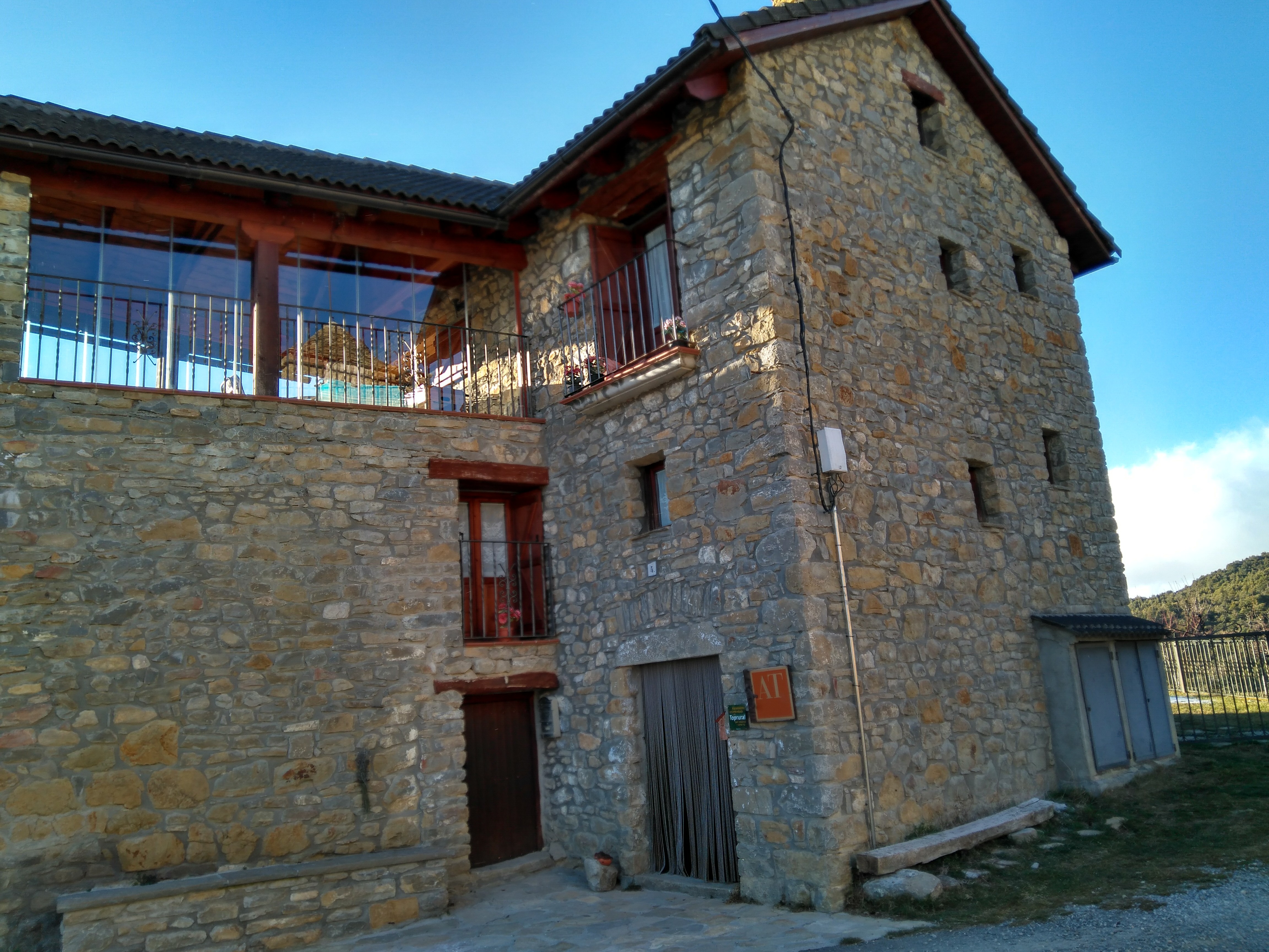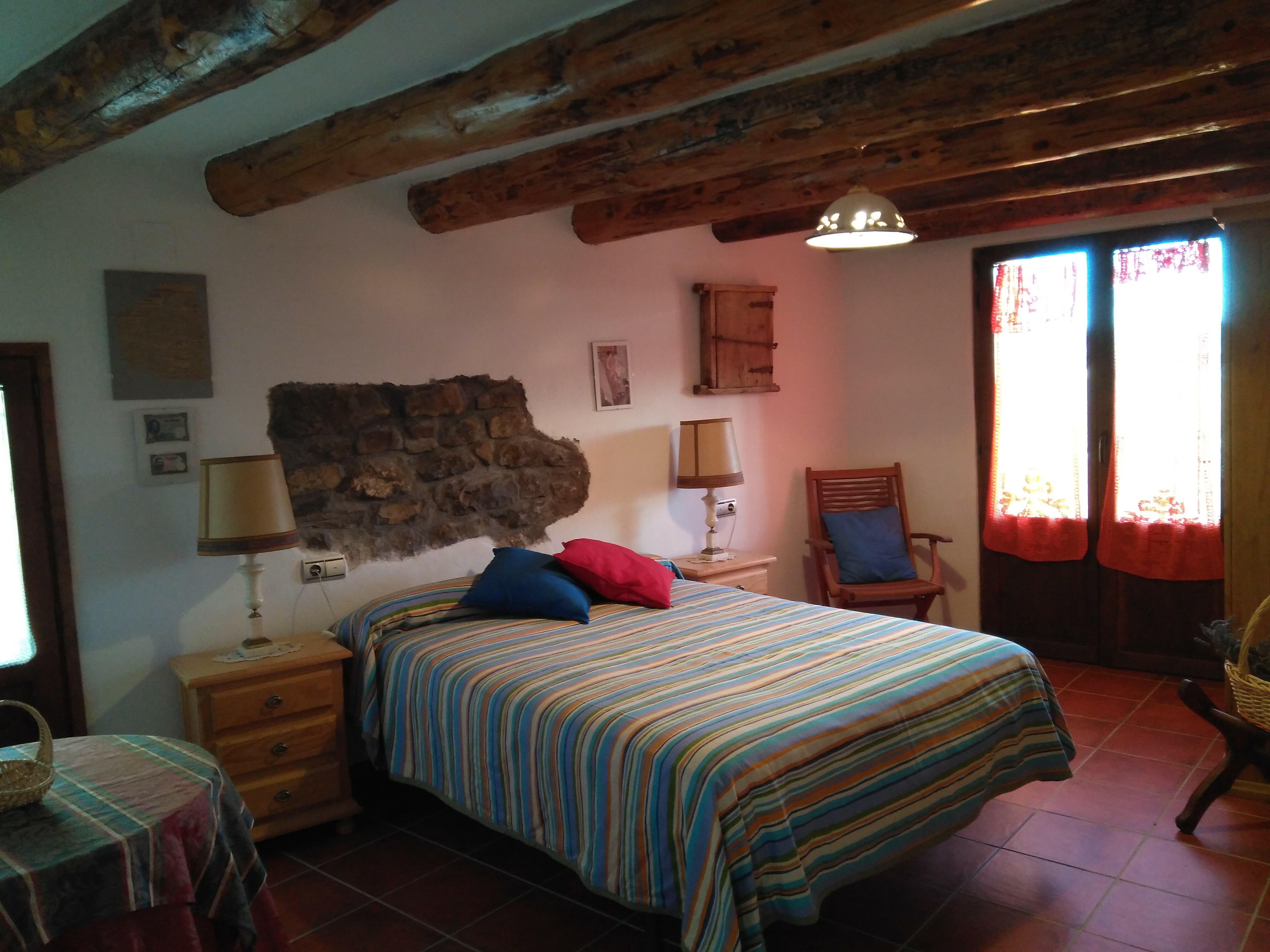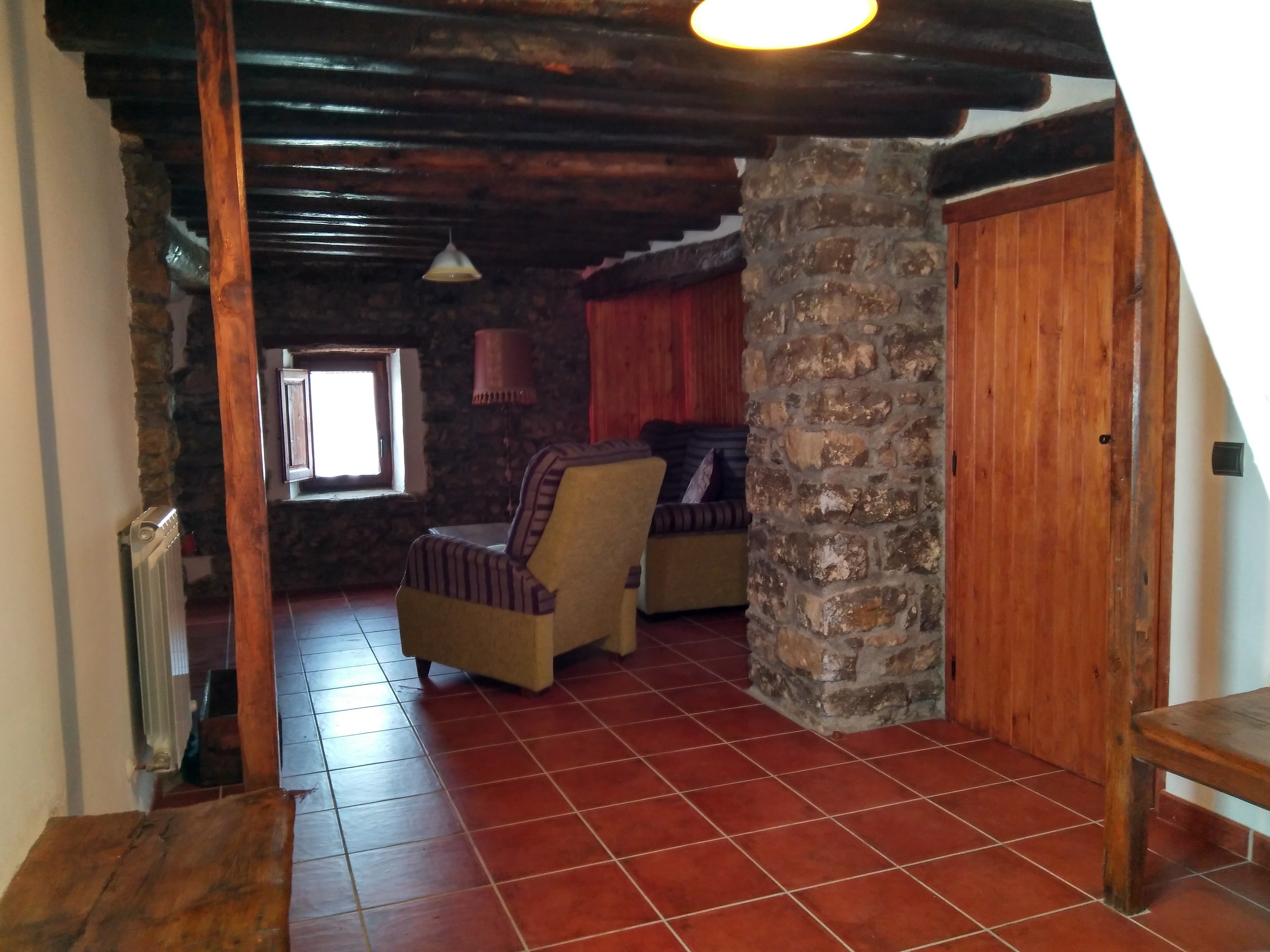 La casa principal es de 5 plazas y esta equipada con todo lo necesario, tiene calefaccion y esta compuesta de planta baja con recibidor, primer planta con salon , chimenea , baño y una habitacion doble de matrimonio. En la segunda planta se encuentra la cocina-comedor, baño , una habitacion con dos camas y terraza acristalada de mas de 20mts.con bonitas vistas.La propiedad dispone de una zona comunitaria con barbacoa cerrada , una pergola con mesa de ping pong y una terraza con bonitas vistas